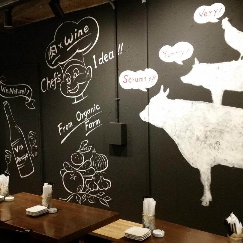 店内のCartoonの壁絵が、通りがかりの人を引き寄せる|大衆ビストロ GABURI