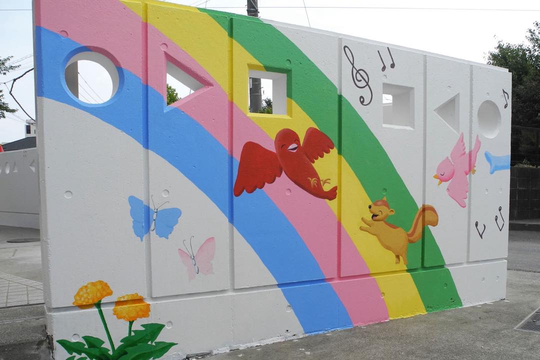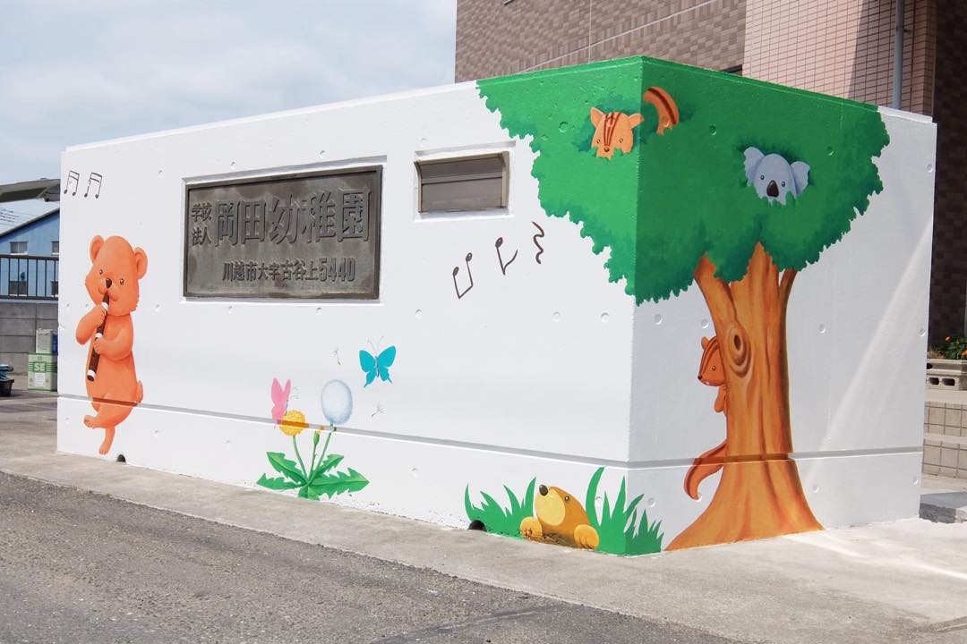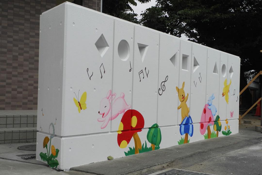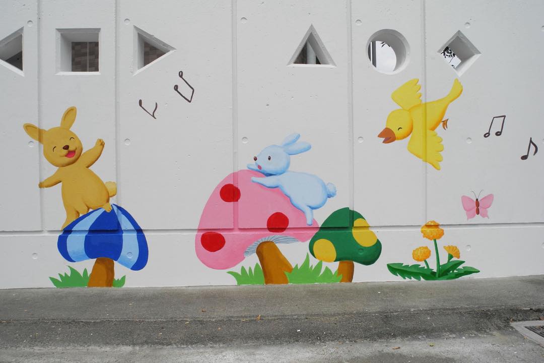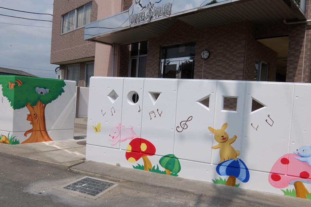 冷たいコンクリート塀が明るいメルヘンの世界に大変身!|岡田幼稚園