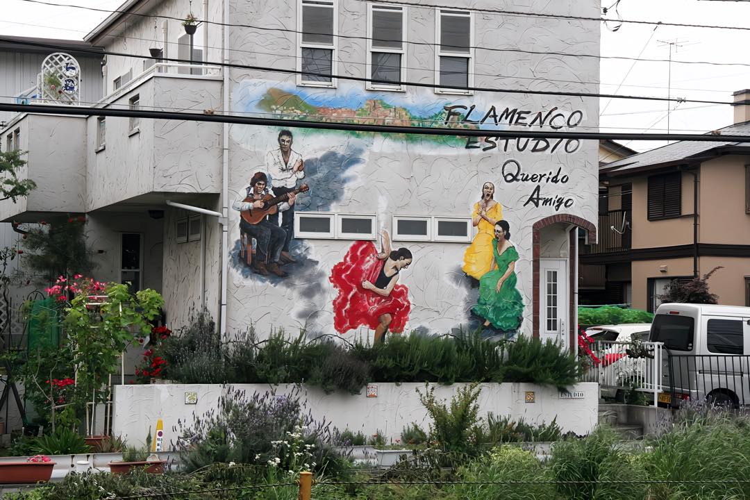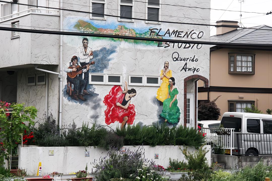 フラメンコの壁絵とラベンダーが街並みを引き立てる!|Querido Amigo